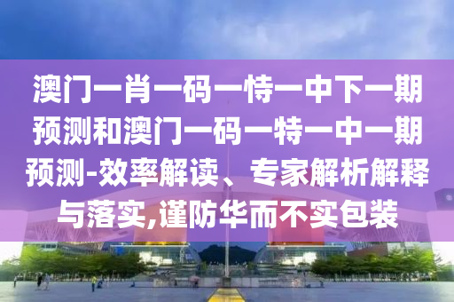 澳门一肖一码一恃一中下一期预测和澳门一码一特一中一期预测-效率解读、专家解析解释与落实,谨防华而不实包装