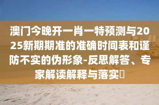 澳门今晚开一肖一特预测与2025新期期准的准确时间表:反思解答、专家解读解释与落实