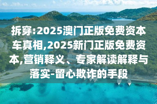 拆穿:2025澳门正版免费资本车真相,2025新门正版免费资本,营销释义、专家解读解释与落实-留心欺诈的手段