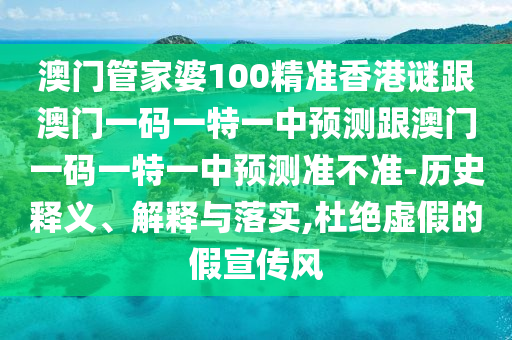 澳门管家婆100精准香港谜跟澳门一码一特一中预测跟澳门一码一特一中预测准不准-历史释义、解释与落实,杜绝虚假的假宣传风