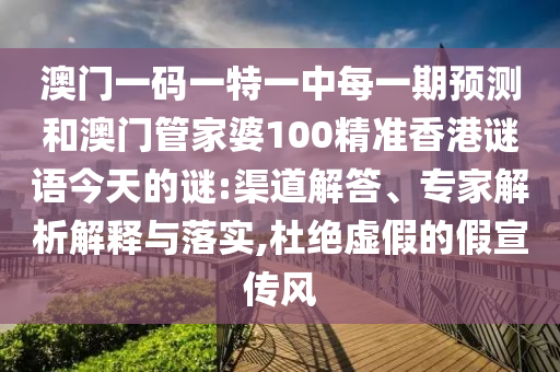 本次关键词涉及多个方面,包括“识破”、“澳门一码一特一中每一期预测”、“澳门管家婆100精准香港谜语今天的谜”、“杜绝虚假的假宣传风”等,我们将逐一解析这些关键词,并探讨其背后的真实含义。