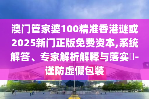 澳门管家婆100精准香港谜或2025新门正版免费资本,系统解答、专家解析解释与落实​-谨防虚假包装
