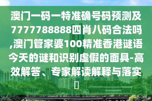 关于澳门一码一特准确号码预测及7777788888四肖八码合法性的探讨,以及澳门管家婆100精准香港谜语今天的谜高效解答、专家解读与落实,以及识别虚假宣传的问题,这是一个涉及多个方面的话题,我们将逐一解析这些关键词,并提醒公众警惕虚假宣传。