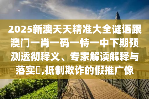 2025新澳天天精准大全谜语跟澳门一肖一码一恃一中下期预测透彻释义、专家解读解释与落实,抵制欺诈的假推广像