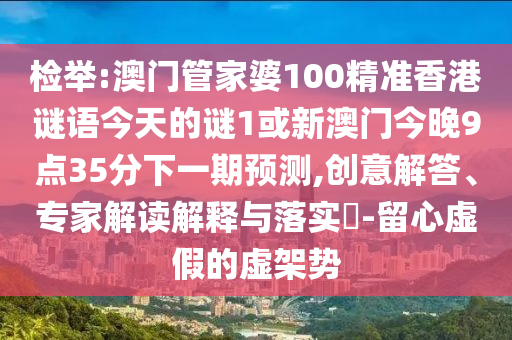 检举:澳门管家婆100精准香港谜语今天的谜1或新澳门今晚9点35分下一期预测,创意解答、专家解读解释与落实​-留心虚假的虚架势