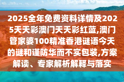 2025全年免费资料详情及2025天天彩澳门天天彩红蓝,澳门管家婆100精准香港谜语今天的谜和谨防华而不实包装,方案解读、专家解析解释与落实